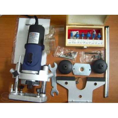 Электрический фрезер Wintech WER 850E оснащён однофазным коммутаторным двигателем на 850 Вт. Регулировка оборотов вращения происходит в диапазоне 11500-34000 об/мин, так что подобрать оптимальный режим работы для различных материалов довольно легко. Упрощённый доступ к угольным щёткам ускоряет процесс их замены и позволяет самостоятельно это сделать без траты времени на поход в сервисный центр, плюс ко всему дополнительные щётки идут в наборе. Помимо этого в комплект поставки входит набор из шести фрез, которые помогут воплотить в реальность задумку любого мастера, кокой бы сложности она не была, а также параллельная и циркульная направляющая для точных работ.