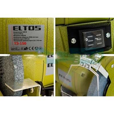 Точило электрическое Eltos ТЭ-150, коробок, инструкция (паспорт), защитные стекла, упорные планки.